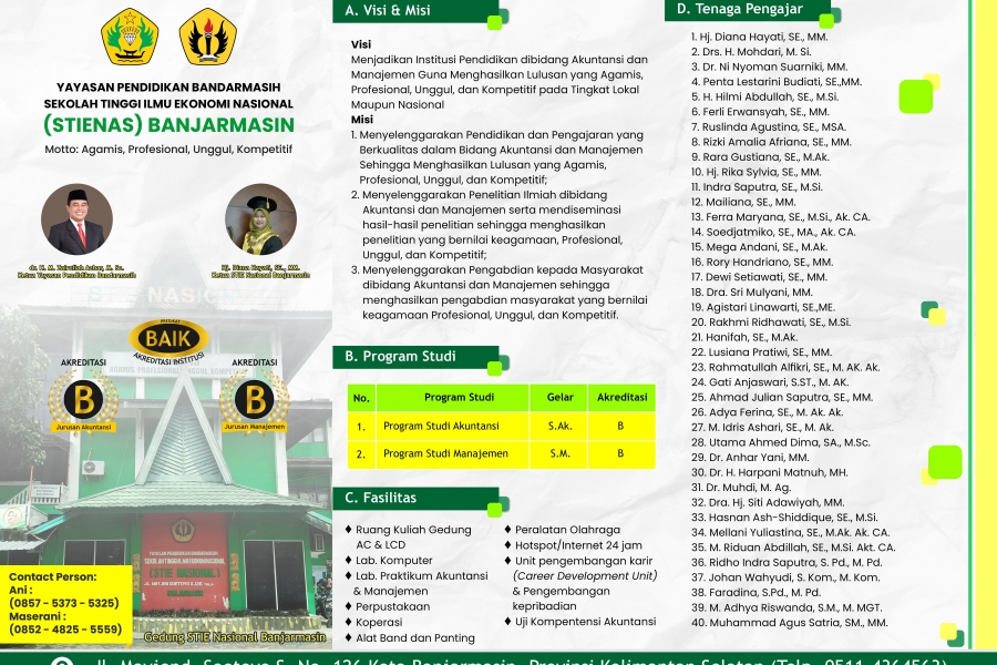 Penerimaan Mahasiswa Baru Periode 2018-2019 STIENAS 17412 STIENAS Banjarmasin merupakan Kampus terdepan yang berada di Kalimantan Selatan, Menjadi Mahasiswa/i Generasi Penerus Bangsa yang mampu bersaing...