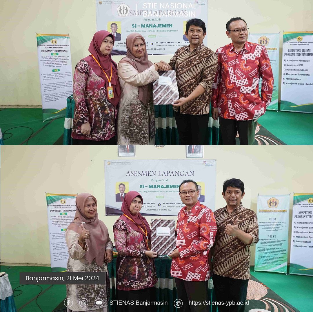 Tim Lembaga Akreditasi Mandiri Ekonomi Manajemen Bisnis dan Akuntasi (LAMEMBA) melakukan asesmen lapangan akreditasi Program Studi Manajemen Sekolah Tinggi Ilmu Ekonomi Nasional Banjarmasin di Aula (21/05/24).