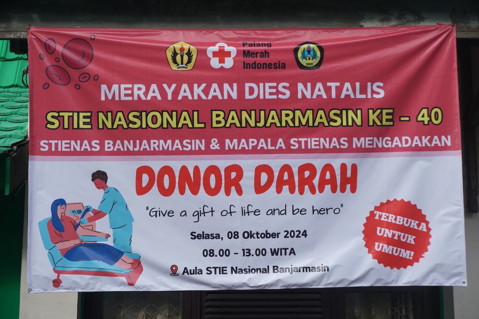 Mahasiswa Pencinta Alam Sekolah Tinggi Ilmu Ekonomi Nasional Banjarmasin (MAPALA STIENAS) dan Stienas Banjarmasin bekerja sama dengan Palang Merah Indonesia (PMI) Kota Banjarmasin menyelenggarakan aksi donor darah di Kampus Stienas Banjarmasin pada Senin (08/10/2024).