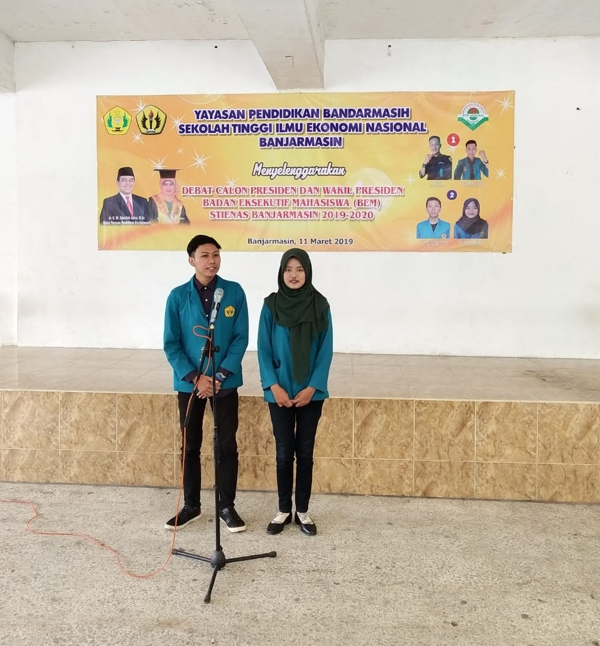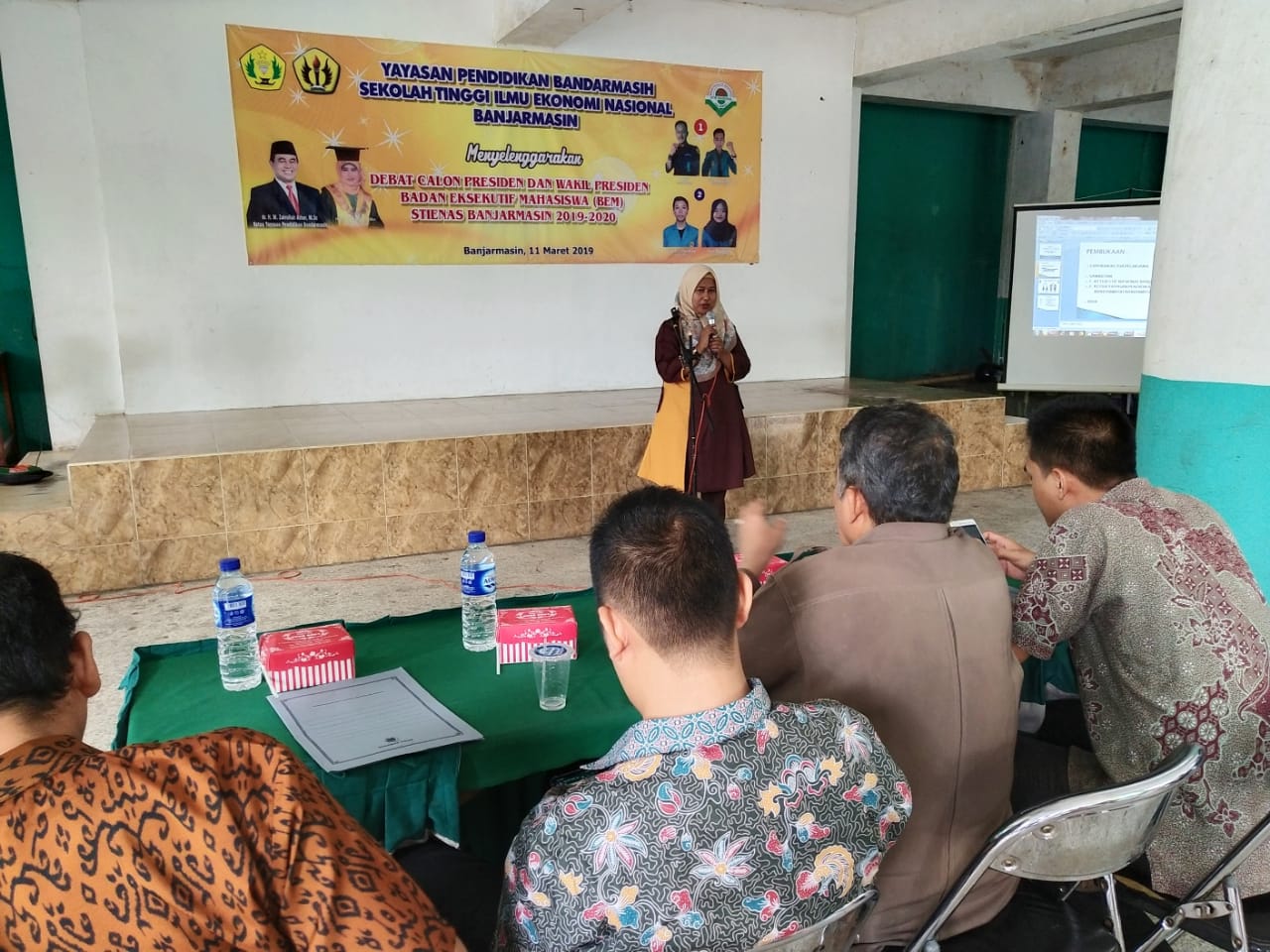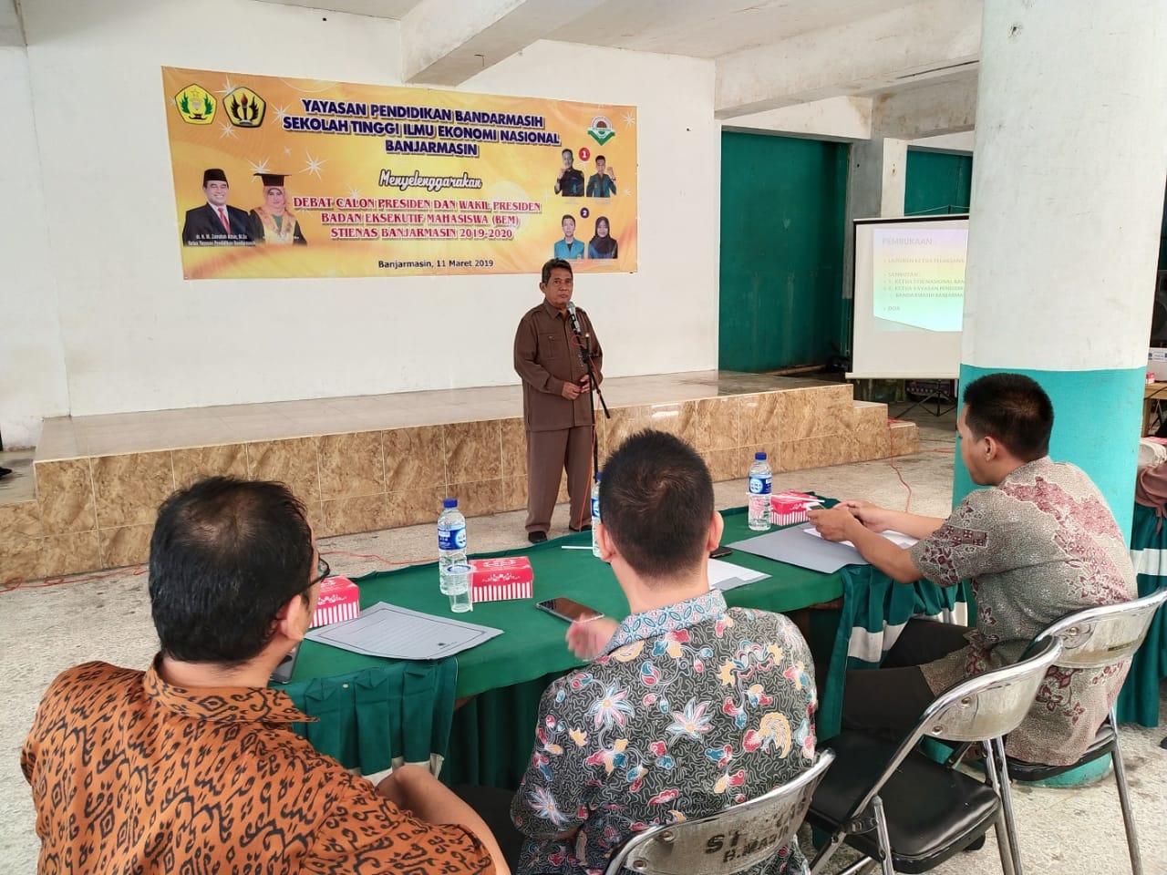 Debat dihadiri oleh seluruh Civitas Akademika yang terdiri Sekretaris Yayasan Pendidikan Bandarmasih dan seluruh jajaran, Ketua STIE Nasional Banjarmasin dan seluruh jajaran, Dosen, Karyawan, Perwakilan seluruh Unit Kegiatan Mahasiswa didalam BEM, dan Mahasiswa STIE Nasional Banjarmasin.