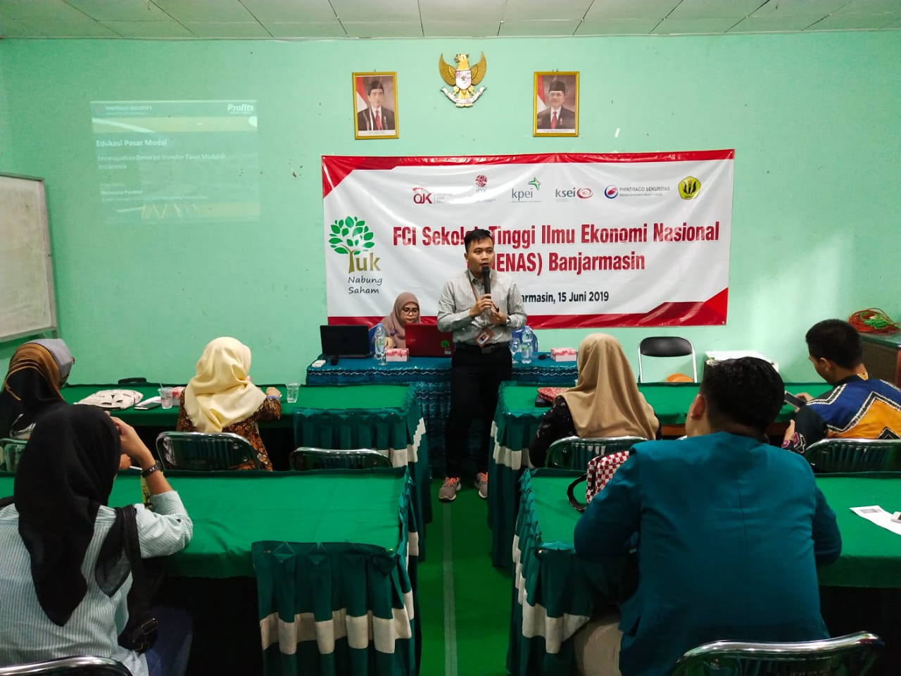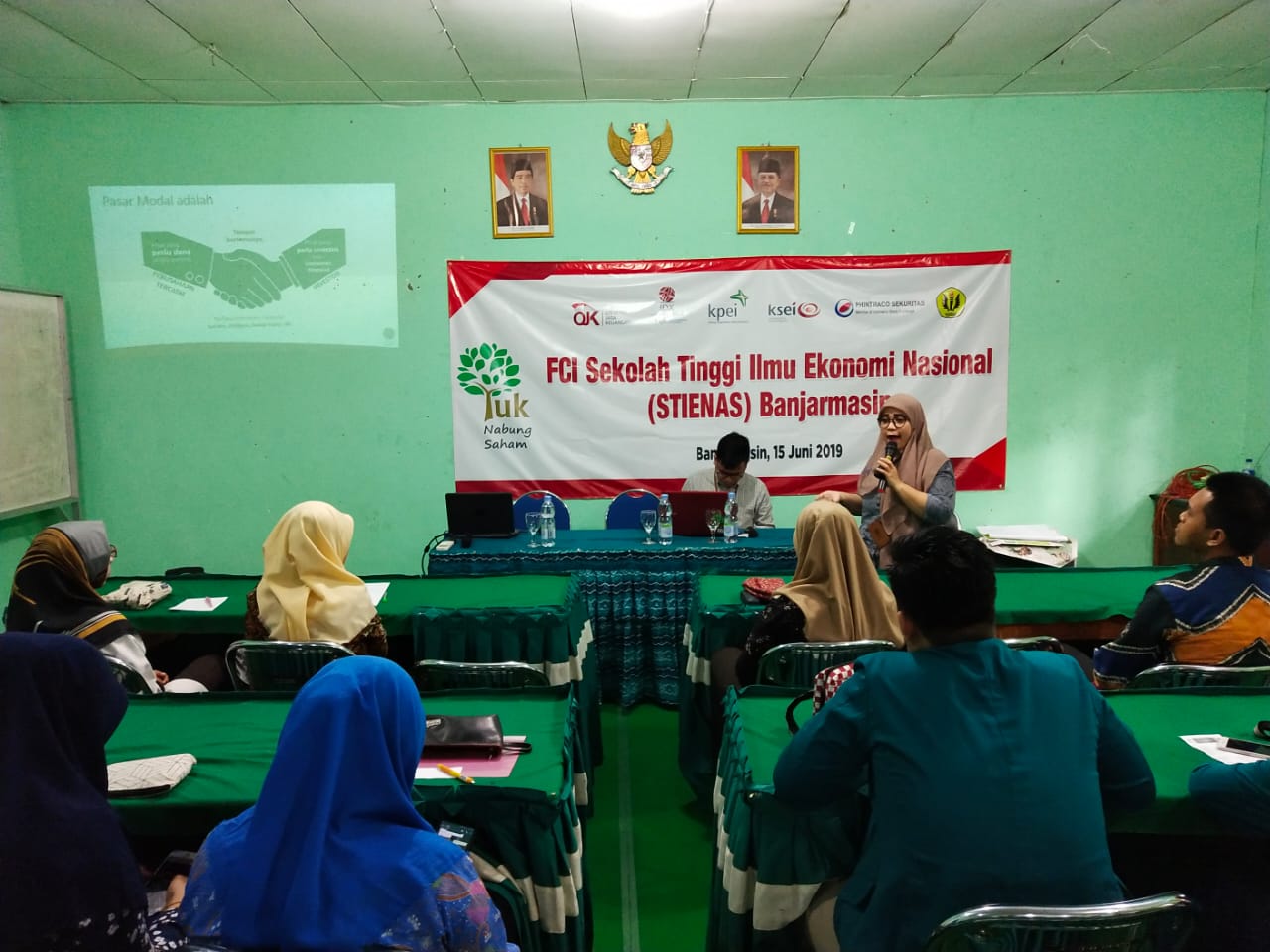 Forum calon investor STIENAS Banjarmasin diikuti oleh mahasiswa aktif, calon wisudawan, Kelompok Studi Pasar Modal dan dosen-dosen dari STIE Nasional Banjarmasin.