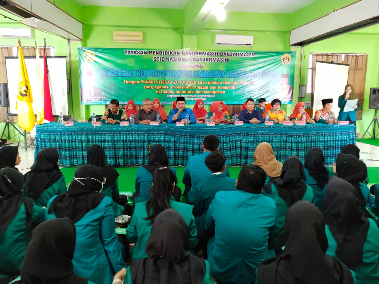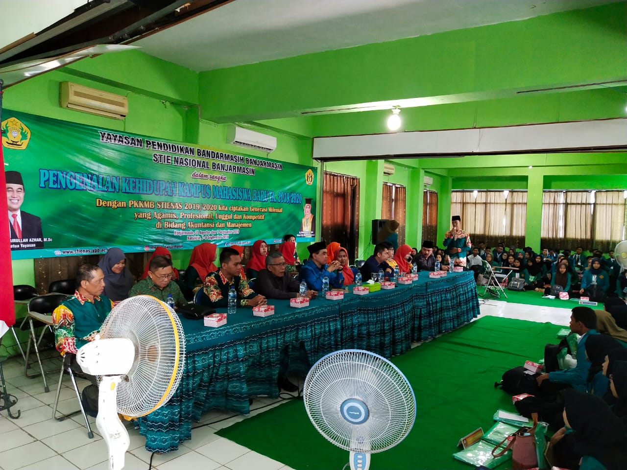 Pembukaan kegiatan PKKMB (Pengenalan Kehidupan Kampus Mahasiswa Baru) Stie Nasional dilaksanakan pada hari Sabtu tanggal 31 Agustus 2019, kegiatan PKKMB dilaksanakan slama 4 hari, 2 hari dilaksanakan di kampus STIENAS Banjarmasin tanggal 31 Agustus dan 1 September 2019 dan 2 hari di Batulicin tanggal 7 dan 8 September 2019, jumlah mahasiswa yang mngikuti kegiatan PKKMB tahun akademik 2019/2020 berjumlah 254 mahasiswa/i program studi Akuntansi dan Manajemen, kegiatan PKKMB dibuka oleh ketua Yayasan Pendidikan Bandarmasih Banjarmasin Bapak dr. H. M. Zairullah Azhar didampingi oleh ketua STIENAS ibu Hj. Diana Hayati, SE.MM. Selamat datang adik adik mahasiswa baru di kampus hijau STIENAS..semangat dan sukses buat kalian semua..bravo...