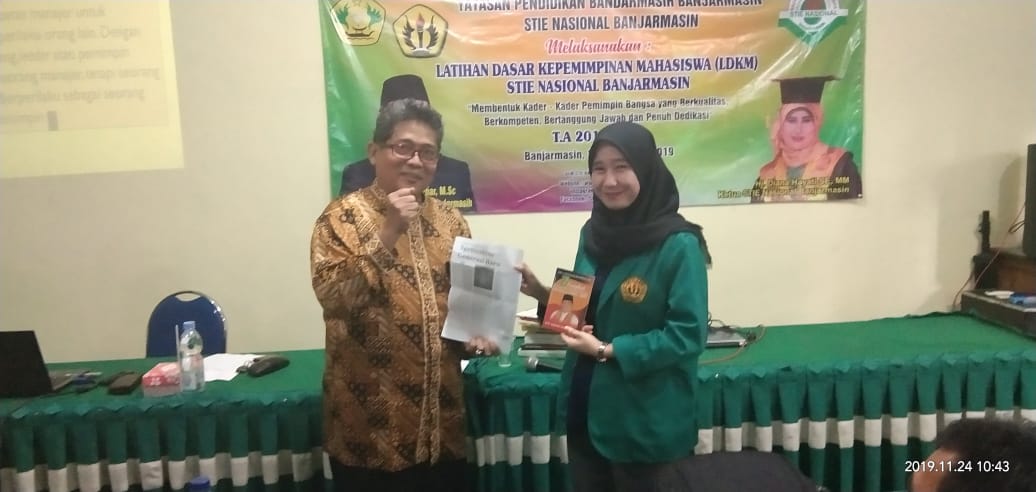 Latihan Dasar Kepemimpinan Mahasiswa (LDKM) STIE Nasional Banjarmasin dilaksanakan pada Minggu, 24 November 2019 bertempat di gedung A STIENAS, dengan tema "Membentuk Kader Pemimpin Bangsa yang Berkualitas, Kompeten, Bertanggung jawab dan Penuh Dedikasi". LDKM tahun 2019 ini diikuti 70 orang pserta yg berasal dari 11 UKM yang ada di STIENAS.
