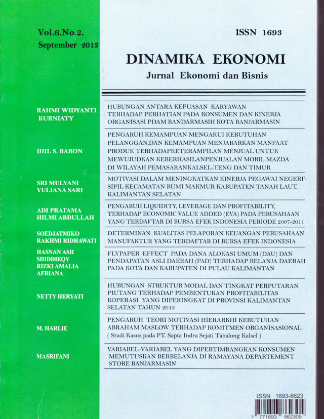 DINAMIKA EKONOMI Jurnal Ekonomi dan Bisnis Vol.6 No.2 September 2013